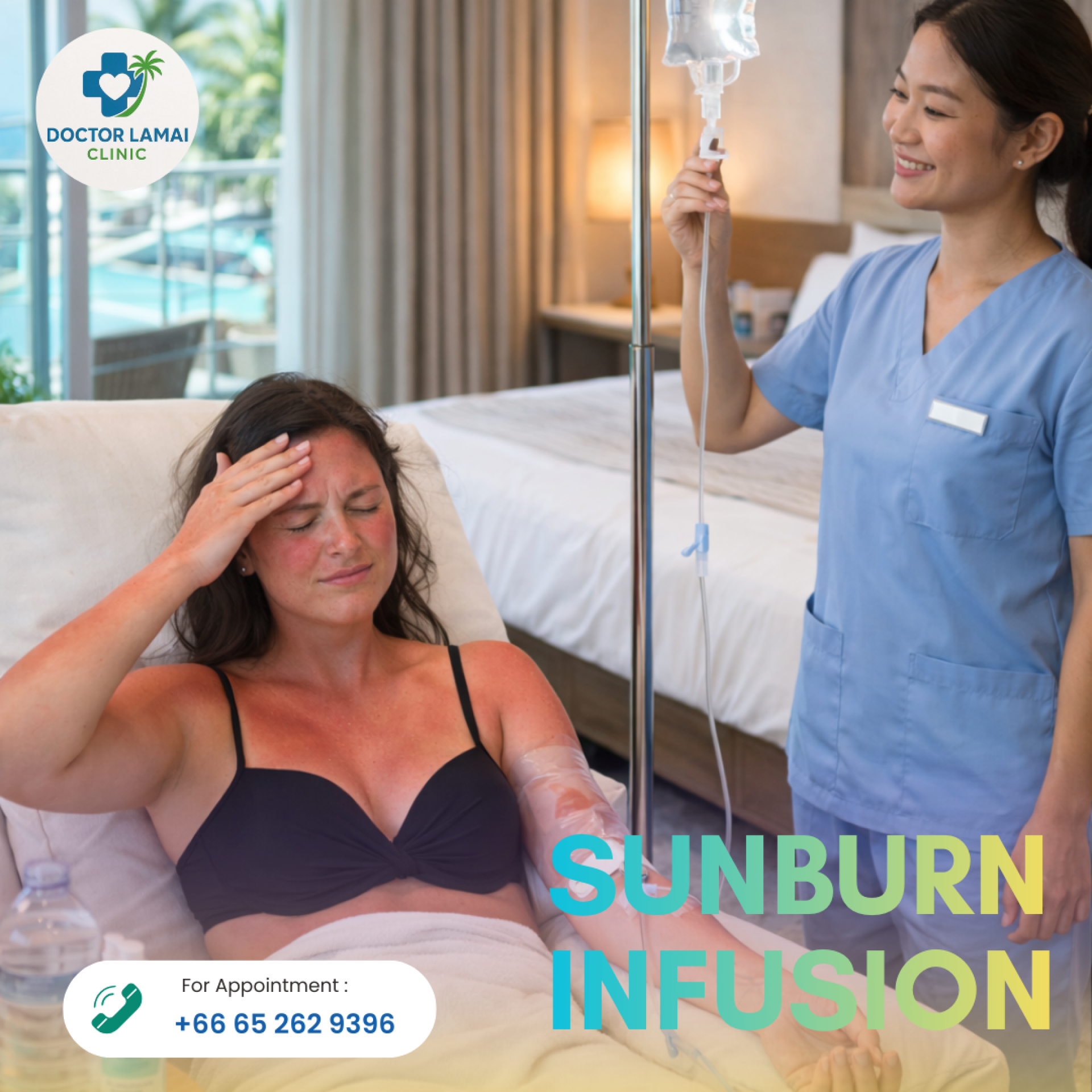A severe sunburn is your body screaming for help. Don't ignore it. A vitamin infusion for sunburn is the fastest way to cool the fire, stop the pain, and save the rest of your vacation days.Visit Doctor Lamai Clinic to get the medical repair you need, and please—wear sunscreen next time!