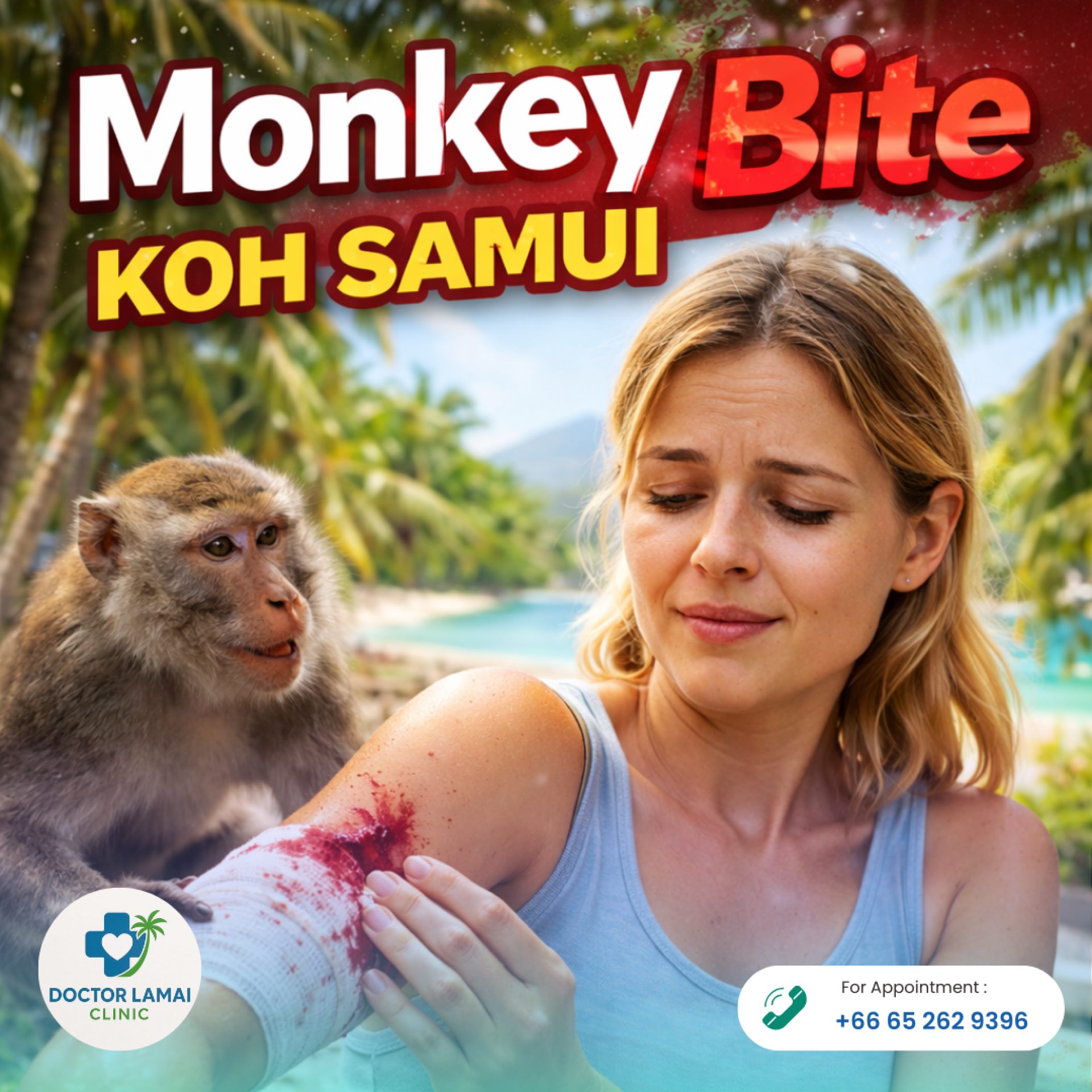 A monkey bite is scary, but the medical path forward is highly effective and simple. Do not waste time worrying. Wash the wound thoroughly and get to a medical professional immediately.Head to Doctor Lamai Clinic to start your post-exposure treatment. By taking swift action, you ensure that this encounter is just a wild story to tell back home, rather than a medical tragedy.