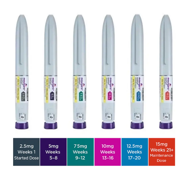 The Mounjaro (tirzepatide) injection pen comes in six dosage strengths, designed to be adjusted gradually according to your doctors treatment plan. This step-up dosing schedule helps your body adapt safely and minimizes side effects.
